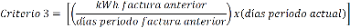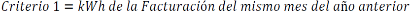 Este criterio 1 consiste en utilizar el consumo registrado por el "USUARIO DE SUMINISTRO BÁSICO" en el mismo período del mes, del año anterior medido en kilowatt hora (kWh).
