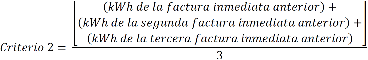 El criterio 2 consiste en la suma de los consumos de energía eléctrica registrados en las últimas tres Facturaciones anteriores a la actual divida entre tres para obtener un promedio, y es utilizado cuando no se cuenta con el correlativo del año anterior.