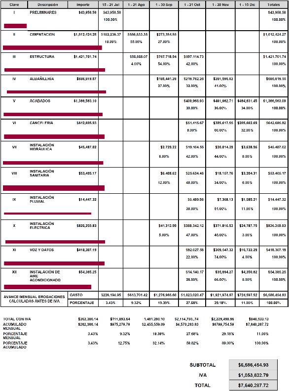 | 14 | Suministro, habilitado y colocación de acero de refuerzo Fy = 4200 kg/cm² de 19 mm (3/4") de diámetro en contratrabes | kg | 2,625.00 | $49.39 | $129,648.75 |
