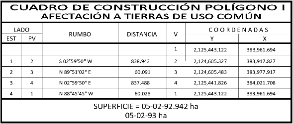 16. Que la Dirección General de Ordenamiento de la Propiedad Rural (DGOPR) de la Sedatu, el 7 de octubre de 2022, emitió acuerdo de instauración del procedimiento de expropiación con número de expediente DGOPR-DE/SOE23QR/0018FONATUR TREN MAYA, S.A. de C.V/2022; 17. Que el comisionado técnico del RAN y el comisionado agrario de la Sedatu rindieron el "informe de comisión de Trabajos Técnicos e Informativos de Expropiación", de 4 de noviembre de 2022, en el que señalan que la superficie real a expropiar al ejido "Reforma Agraria", municipio de Felipe Carrillo Puerto, estado de Quintana Roo, es de 06-93-92 hectáreas, de terrenos de temporal de uso común, lo cual se describe en los siguientes planos y cuadros de construcción: