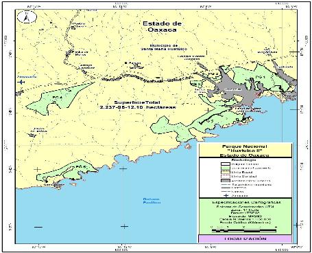 | A partir de este vértice, que es colindante con el polígono del parque nacional Huatulco, con un rumbo general noroeste se continua sobre el límite del mismo, con una distancia aproximada de 16,662.02 metros hasta llegar al vértice 1379 | |||||