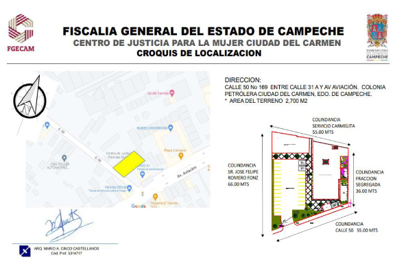 El PROYECTO del CJM, se encuentra ubicado en Predio Urbano número 169 de la Calle 50, Colonia Petrolera, Municipio Ciudad del Carmen, Estado de Campeche.
