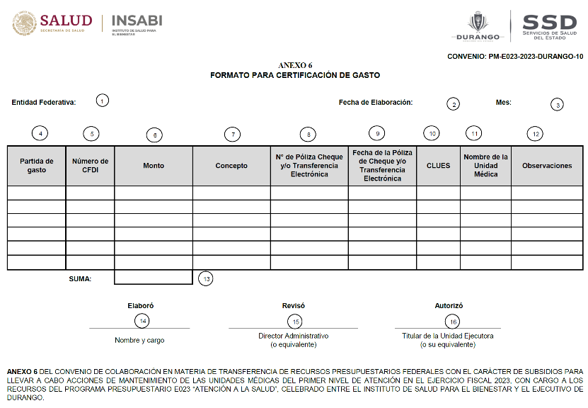 | 16 | DGSSA001166 | BERMEJILLO | CALLE FERNANDOCARRILLO SIN NUMERO NINGUNO JUNTA MUNICIPAL MAPIMI CALLE C.P.35230 | $ 1,356,399.77 |
