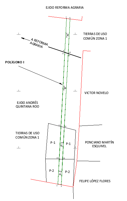 15. Que el comisionado técnico del RAN y el comisionado agrario de la Sedatu rindieron el "informe de comisión de Trabajos Técnicos e Informativos de Expropiación", de 4 de noviembre de 2022, en el que se señalan que la superficie real a expropiar al ejido "Andrés Quintana Roo", municipio de Felipe Carrillo Puerto, estado de Quintana Roo es de 32-01-20 hectáreas, de terrenos de agostadero y temporal, de las cuales 25-91-70 hectáreas son de uso común y 06-09-50 hectáreas son de uso parcelado, la cual se describe en los siguientes planos y cuadros de construcción: