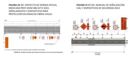 | Ing. Mario M. Camacho Díaz, Jefe de la Unidad de Estudios, Centro SCT BC, 6 de septiembre de 2022 | 1 | Derivado de la revisión del contenido de dicha norma se encontró una discrepancia en la Figura 24.- Señales verticales que indican el principio y fin de la zona de información, en el esquema presentado se observan 5 distancias diferentes X1, X2, X3, X4 y X5 tanto en su nomenclatura como en su longitud visual de imagen, dado que X2=X3 y X4=X5 conforme a la señal SRP-9 que les antecede, "Se propone modificar la figura 24 para que muestre solamente X1, X2 y X3, y que el dibujo considere distancias iguales dónde aplique, lo anterior para no generar confusión al usuario de la Norma. Anexo envío una comparación de la Figura 24 de la Norma PROY-NOM-086-SCT2-2022 y una imagen de la Figura VI-17 del Manual de Señalización Vial y Dispositivos de Seguridad 2014, en dónde se observa lo anteriormente descrito de forma correcta. | Procede El esquema de la figura 24 del proyecto de NOM pretende que una vez que el conductor del vehículo motorizado sea advertido en la zona de información, de la presencia de una obra vial a una distancia "x", mediante la señal SIP, dicho conductor disminuya su velocidad paulatinamente hasta llegar a la zona de transición; de esa forma, en estricto sentido, X2 X3 y X4 X5, como se muestra esquemáticamente en la figura. Si bien en los incisos 6.2.3., 6.3.3. y 6.4.3. del proyecto de NOM se establece que: "la ubicación lateral de las señales preventivas, restrictivas e informativas de protección, respectivamente, podrá variar a juicio del proyectista respecto a lo indicado en dicha Norma", se considera pertinente que la colocación de las señales verticales de protección efectivamente se apegue a que las distancias X2 = X3 y X4 = X5 a fin de no crear confusión. | (Se modifica la figura y se renumera por la 26) |