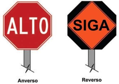 | | Propuesta: Es una señal en forma octagonal de veinticinco (25) centímetros por lado, que en su anverso muestra una señal restrictiva SR-6 "ALTO" que cumpla con los requisitos de forma y color establecidos en la NOM-034-SCT2/SEDATU-2022, Señalización y dispositivos viales para calles y carreteras o la que la sustituya, como se muestra en la figura 11 de esta Norma. En su reverso, inscrito en el octágono, un cuadrado con una diagonal en posición vertical con fondo naranja reflejante con la leyenda "SIGA" hecha con letras de color negro. Los colores blanco, rojo y naranja reflejantes que se utilicen en esta señal deben cumplir con lo indicado en esa Norma; las superficies del octágono que sobresalgan del cuadrado deben ser negras, como se muestra en la figura 12 de esta Norma. Esta señal puede contar con un asta o con un mango y siempre se debe usar en todas las zonas de obras viales de carreteras y vías urbanas que tengan una velocidad reglamentaria mayor de cincuenta (50) kilómetros por hora. Justificación de la propuesta: Tanto la forma como el color de esta señal son congruentes con las señales preventivas (SPP) de zonas de obra que indican a los conductores que deberán circular con precaución a lo largo de la zona de obra. | | | |