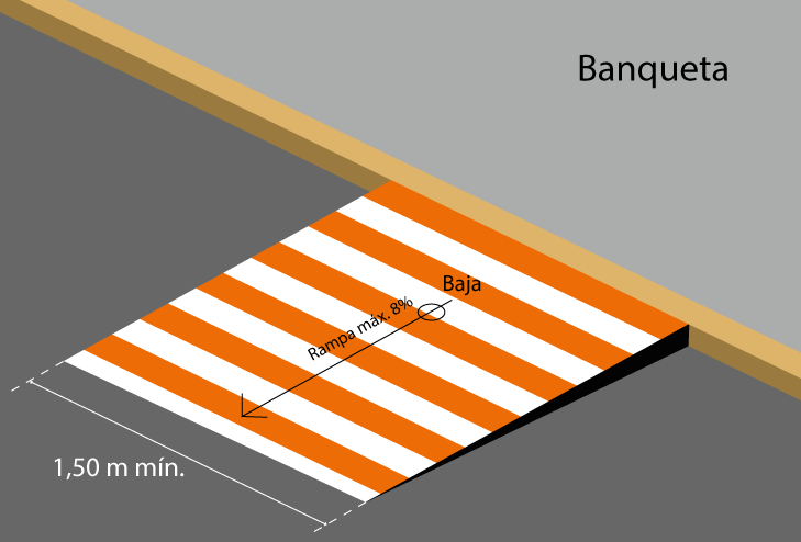 | | 13 | 7.16.1. Forma y tamaño DICE: PROY-NOM-086-SCT2-2022 (Versión 5-sep-22): Son tableros rectangulares colocados a manera de plataforma con un ancho mínimo libre de uno coma cinco (1,5) metros con superficie antiderrapante, firme y nivelada, mientras que la rampa de acceso de acceso a la plataforma debe contar con una pendiente preferente del seis (6) por ciento y máxima del ocho (8) por ciento. DEBE DECIR: Propuesta de SEMOVI CDMX: Son tableros rectangulares con una pendiente preferente del seis (6) por ciento y máxima del ocho (8) por ciento, que pueden estar conformados por una rampa sencilla o bien conectada a una plataforma de acceso; esta última con un ancho mínimo libre de uno coma cinco (1,5) metros. Este elemento debe tener una superficie antiderrapante, firme y nivelada. JUSTIFICACIÓN Cambio en la redacción para simplificar la especificación relativa a la pendiente de la rampa | Procede Se considera pertinente la propuesta del promovente de forma que en el proyecto de NOM se consideren dos tipos de rampas: aquellas integradas por dos elementos y aquellas compuestas por un solo elemento. | 7.16.1. Forma y tamaño Son tableros rectangulares con una pendiente preferente del seis (6) por ciento y máxima del ocho (8) por ciento, que pueden estar conformados por una rampa sencilla o bien conectada a una plataforma de acceso; esta última con un ancho mínimo libre de uno coma cinco (1,5) metros. Este elemento debe tener una superficie antiderrapante, firme y nivelada. Las figuras 21 y 22 mostradas en este inciso son esquemáticas y se presentan sólo como ejemplo, de manera ilustrativa mas no limitativa. (Se incluye la figura 22 y se renumeran las figuras por 21 y 22) ![]() |