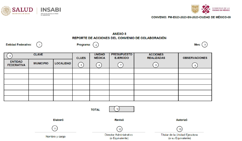 ANEXO 8 CONVENIO DE COLABORACIÓN EN MATERIA DE TRANSFERENCIA DE RECURSOS PRESUPUESTARIOS FEDERALES CON EL CARÁCTER DE SUBSIDIOS, CON CARGO A LOS RECURSOS DEL PROGRAMA PRESUPUESTARIO E023 "ATENCIÓN A LA SALUD" PARA EL EJERCICIO FISCAL 2023, A DESTINARSE AL MANTENIMIENTO DE UNIDADES MÉDICAS, CON LA FINALIDAD DE FORTALECER LA ATENCIÓN A LAS PERSONAS SIN SEGURIDAD SOCIAL, CELEBRADO ENTRE EL INSTITUTO DE SALUD PARA EL BIENESTAR Y EL EJECUTIVO DE LA CIUDAD DE MÉXICO, POR CONDUCTO DE LAS PERSONAS TITULARES DE LA SECRETARÍA DE ADMINISTRACIÓN Y FINANZAS, ASÍ COMO DE LA SECRETARÍA DE SALUD DE LA CIUDAD DE MÉXICO.