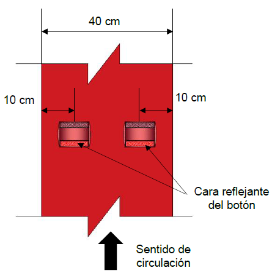 | | 1 1 | Como dice: 6.7.1.5. Botones reflejantes Las rayas de emergencia para frenado, discontinuas (M-14.1) y continuas (M-14.2), se deben complementar con botones reflejantes que tengan en la cara opuesta al sentido de circulación un reflejante de color rojo que esté dentro del área correspondiente definida por las coordenadas cromáticas y con los coeficientes de intensidad luminosa inicial mínimos que se establecen en las tablas 16 y 35, respectivamente, de la Norma Oficial Mexicana NOM-034-SCT2/SEDATU-2022, Señalización y dispositivos viales para calles y carreteras o la que la sustituya. Se colocarán dos (2) botones dispuestos como se muestra en la figura 7 a cada quince (15) metros, al centro del espacio entre segmentos marcados cuando la raya sea discontinua o sobre la raya continua a partir del sitio donde se inicie. Figura 7.- Ubicación de los botones reflejantes ![]() Como debe decir: 6.7.1.5. Botones reflejantes Las rayas de emergencia para frenado, discontinuas (M-14.1) y continuas (M-14.2), se deben complementar con botones reflejantes que tengan en la cara al tránsito un reflejante de color rojo que esté dentro del área correspondiente definida por las coordenadas cromáticas y con los coeficientes de intensidad luminosa inicial mínimos que se establecen en las tablas 16 y 35, respectivamente, de la Norma Oficial Mexicana NOM-034-SCT2/SEDATU-2022, Señalización y dispositivos viales para calles y carreteras o la que la sustituya. Se colocarán dos (2) botones dispuestos como se muestra en la figura 7 a cada quince (15) metros, al centro del espacio entre segmentos marcados cuando la raya sea discontinua o sobre la raya continua a partir del sitio donde se inicie. Figura 7.- Ubicación de los botones reflejantes ![]() NOTA IMPORTANTE: Tomando en consideración que la reflectividad para el color rojo es de baja intensidad (35 (mcd / lx) / m2, se sugiere delinear dicha raya con franjas de color blanco de 5 a 10 cm y conforme a las coordenadas y reflexión indicadas en la NOM-034-SCT2-2011, siendo esta ultima de 250 (mcd / lx) / m2 inicial, lo cual además de resaltar el color rojo de la raya en condiciones diurnas, mejorar su visibilidad en condiciones nocturnas; asimismo, alargara su vida útil de la raya, ya que des pues de un año para pinturas base agua, esta marcas deben cumplir con una reflectividad de 100 (mcd / lx) / m2, y la raya roja de solo 11 (mcd / lx) / m2. | La propuesta del promovente no mejora o aclara la idea expresada en el texto, sobre cuál es la cara del botón reflejante que debe contar con el reflejante de color rojo. Sin embargo, se considera pertinente agregar la flecha del sentido de circulación a la figura 7, así como indicar las caras reflejantes de los botones. Respecto al color de los botones reflejantes, se considera pertinente modificar la figura 7 de forma que dicho color sea rojo, tanto del cuerpo del botón como del material reflejante y se agregue una flecha en la parte inferior del dibujo para indicar el sentido de circulación del tránsito. Procede parcialmente | Se modifica la figura 7. ![]() | |||||||||||||||||||||||||||||||||||||||||||