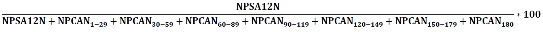 | Porcentaje de saldo sin días de atraso con la Institución en los últimos 4 meses considerando el mes de calificación Calculado a la fecha de calificación (cierre de mes) | ![]() Donde: · SSAt-n: Saldo del acreditado con la Institución con 0 días de atraso en el periodo "t", donde t=0 corresponde a la fecha de calificación (cierre de mes), y t=n corresponde a n periodos mensuales anteriores a la fecha de calificación (cierre de mes). · St-n: Saldo insoluto del acreditado con la Institución en el periodo "t", donde t=0 corresponde a la fecha de calificación (cierre de mes), y t=n corresponde a "n" periodos mensuales anteriores a la fecha de calificación (cierre de mes). El cálculo deberá realizarse considerando todas las exposiciones del acreditado con la Institución. En caso de que el acreditado no cuente con el tiempo de experiencia interna necesario para el cálculo de la variable, se realizará el cálculo con la información disponible al momento de la calificación. |
