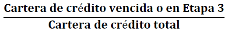 | Traspaso a cartera de crédito con riesgo de crédito etapa 3 El saldo insoluto conforme a las condiciones de pago establecidas en el contrato de crédito deberá reconocerse como cartera de crédito con riesgo de crédito etapa 3 cuando: 1. Se tenga conocimiento de que el acreditado es declarado en concurso mercantil, conforme a la Ley de Concursos Mercantiles. 2. Tratándose de créditos a la vivienda conforme a la modalidad de pago correspondiente (REA o ROA), las amortizaciones que no hayan sido liquidadas en su totalidad conforme al monto exigible establecido en el estado de cuenta que le corresponda cubrir al acreditado y presenten 90 o más días de vencidos. 3. Las amortizaciones de los créditos que no estén considerados en los numerales anteriores, que no hayan sido liquidadas en su totalidad en los términos pactados originalmente, siempre que los adeudos correspondan a: