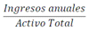 | Rotación de activos totales Antigüedad no mayor a 18 meses a la fecha de calificación (cierre de mes) | Proporción que representan las ventas netas totales sobre el total del activo ![]() Donde: · Ingresos anuales, será el acumulado de los ingresos reportados en el estado de resultado integral del acreditado, considerando un horizonte temporal de los últimos 12 meses. En el caso de acreditados de nueva creación que no cuenten con 12 meses de información financiera o su equivalente a la fecha de calificación (cierre de mes), se deberá utilizar la totalidad de la información disponible a la fecha de calificación (cierre de mes) para realizar el cálculo. · Activo Total, será el monto reportado en el estado de situación financiera del acreditado. |