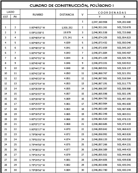 18. Que el comisionado técnico del RAN y el comisionado agrario de la Sedatu rindieron el "informe de comisión de Trabajos Técnicos e Informativos de Expropiación", de 5 de abril de 2023, en el que señalan que la superficie real a expropiar al ejido "N.C.P.E. Prof. Sergio Butrón Casas", municipio de Othón P. Blanco, estado de Quintana Roo, es de 26-94-89 hectáreas, de las cuales 25-93-04 hectáreas son de agostadero de uso común y 01-01-85 hectáreas son de temporal de uso parcelado, lo cual se describe en el siguiente plano y cuadro de construcción: