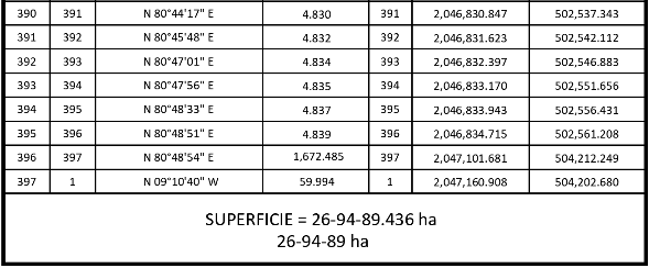 Superficie total a expropiar: 26-94-89 has