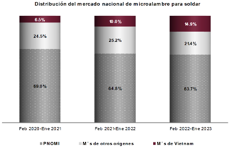 2. Las Solicitantes manifestaron que las importaciones de microalambre para soldar originarias de Vietnam, se realizaron en volúmenes significativos y en condiciones de discriminación de precios, causando amenaza de daño a la industria nacional.