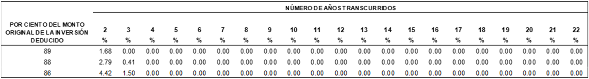 Artículo Segundo. Los por cientos que se podrán aplicar para deducir las inversiones a que se refiere el artículo anterior, son los siguientes: