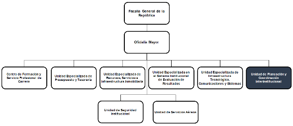 Conforme al artículo 5, fracción XII, inciso f, del Estatuto Orgánico de la Fiscalía General de la República, la Oficialía Mayor se integra, entre otras unidades, por la Unidad de Planeación y Coordinación Interinstitucional, conforme a lo siguiente: