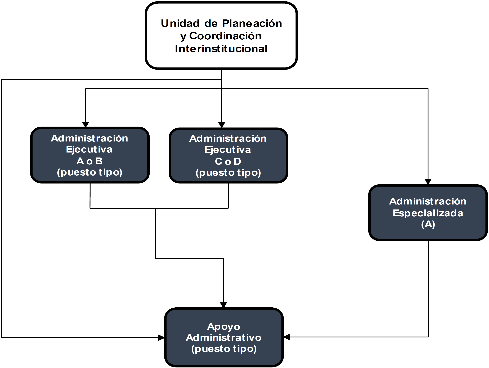 B) Puestos tipo cuya denominación será Administración Ejecutiva, los cuales se distinguirán, uno del otro, agregando al final una letra C o D;