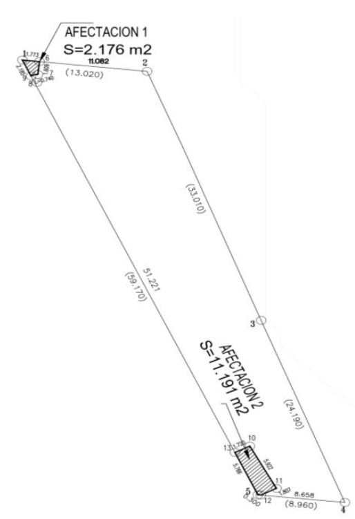 | 11 | 13 | N 02°07'08.04'' W | 9.320 | 13 | 3,601,684.723 | 509,408.101 | OI-034-102 |