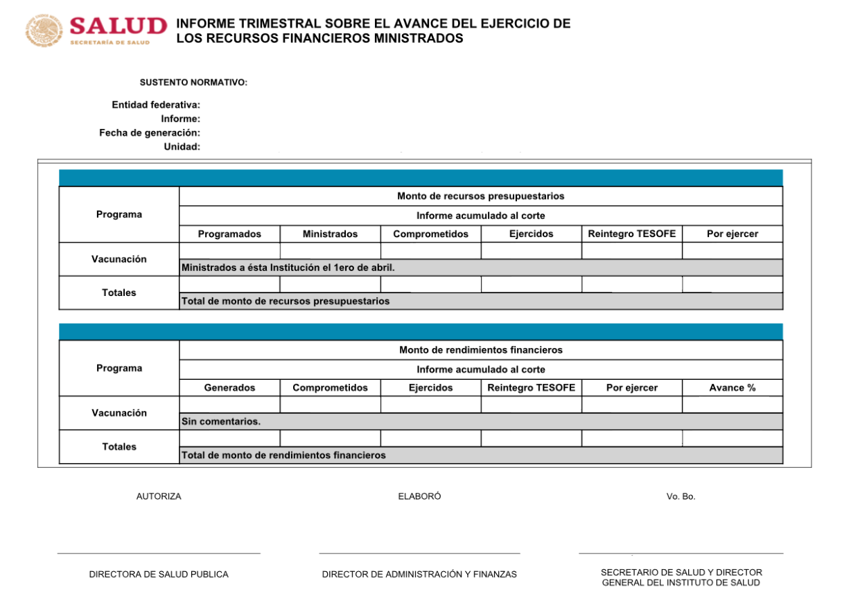 | SUBSECRETARÍA DE PREVECIÓN Y PROMOCIÓN DE LA SALUD UA/OAD: . PROGRAMA: . Ejercicio Fiscal: . Entidad Federativa: . Asunto: Constancia de cierre de Presupuesto __#Titular de la Secretaría de Salud del Estado__ __#Cargo del Titular de la Secretaría de Salud del Estado__ Entidad Federativa: Me refiero al Convenio Específico en Materia de transferencia de Insumos y ministración de recursos presupuestarios federales para realizar Acciones en Materia de Salud Pública en las Entidades Federativas, Convenio SaNAS para el ejercicio 2023, al respecto, y a efecto de dejar constancia de la comprobación de los recursos ministrados a través de dicho Convenio, me permito informar a usted que los recursos transferidos al programa de __#Nombre del Programa__ a través de la _#UA/OAD_ por un monto de $______.00 (Monto en Letra 00/100 M.N.) han sido comprobados en su totalidad conforme a las partidas del gasto autorizadas por esta Unidad Administrativa u Órgano Administrativo Desconcentrado cumpliendo lo establecido en el convenio antes referido. La emisión de la presente constancia no prejuzga la autenticidad de la información y de la documentación que respaldan los Certificados de Gasto y los Certificados de Reintegro, presentada a esta Unidad Administrativa u Órgano Administrativo Desconcentrado para la comprobación del gasto, por lo que no exime a esa entidad federativa de la responsabilidad que, en su caso, los órganos fiscalizadores federales y/o estatales, determinen conforme a sus atribuciones. A T E N T A M E N T E #TITULAR UA/OAD |