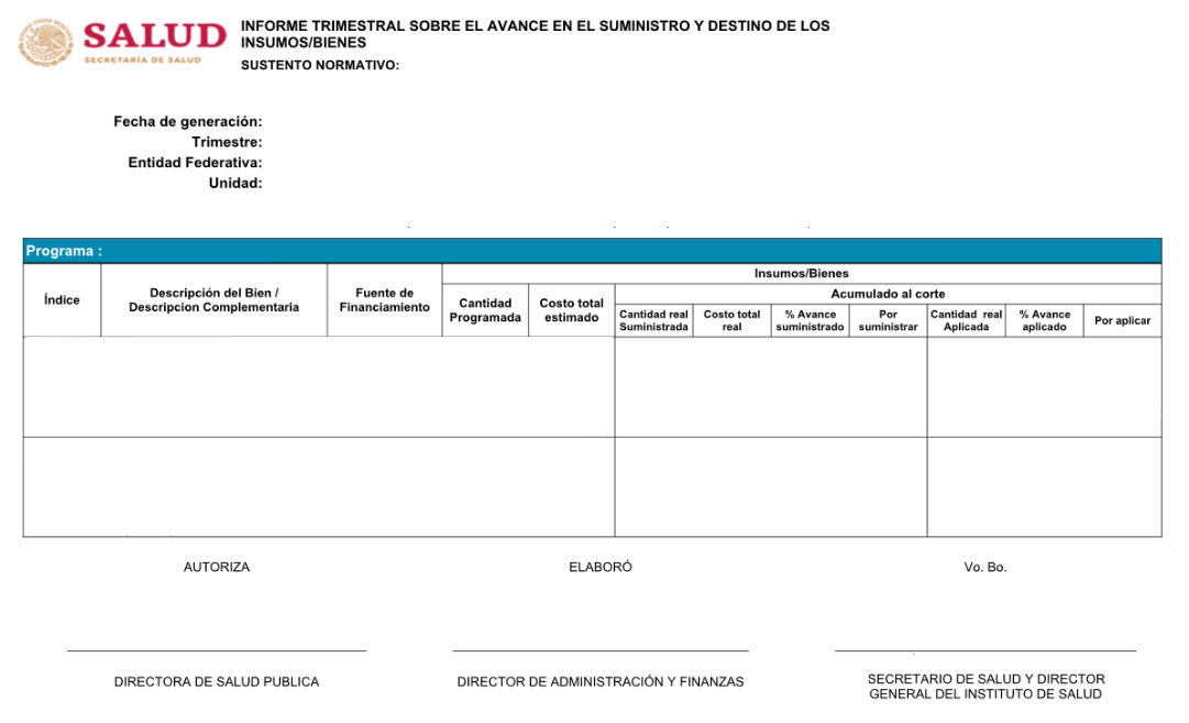 | SUBSECRETARÍA DE PREVECIÓN Y PROMOCIÓN DE LA SALUD UA/OAD: . PROGRAMA: . Ejercicio Fiscal: . Entidad Federativa: . ACTA DE CONCILIACIÓN DE INSUMOS 2023 En la Ciudad de México, a 15 de marzo de 2024, __(#Titular de la UA/OAD)__, (#Representantes Estatales), con el objeto realizar la conciliación respecto de las cantidades de insumos ministrados por la Secretaría de Salud al __(#Entidad Federativa)__ en adelante __"(#Denominación de la Entidad Federativa)"_ , para el __(#Nombre del Programa)__ con motivo de la suscripción del Convenio Específico en Materia de transferencia de Insumos y ministración de recursos presupuestarios federales para realizar Acciones en Materia de Salud Pública en las Entidades Federativas, Convenio SaNAS para el ejercicio 2023, entre el Ejecutivo Federal por conducto de la Secretaría de Salud, en adelante "LA SECRETARÍA" y __"(#Denominación de la Entidad Federativa)"_, hacen constar lo siguiente: ANTECEDENTES 1.- Con fecha _#fechaConvenioEspecífico_, "LA SECRETARÍA" y _"(#Denominación de la Entidad Federativa", celebraron, el Convenio Específico en Materia de transferencia de Insumos y ministración de recursos presupuestarios federales para realizar Acciones en Materia de Salud Pública en las Entidades Federativas, en adelante Convenio SaNAS 2023, con el objeto de ministrar recursos presupuestarios federales y/o insumos federales a _"(#Denominación de la Entidad Federativa, a fin de coordinar su participación con el Ejecutivo Federal, en términos del artículo 9 de la Ley General de Salud, que permitan a _"(#Denominación de la Entidad Federativa" , la adecuada instrumentación, así como fortalecer la integridad de las acciones de Promoción y Prevención de la Salud. 2.- Con fecha _#fechaPrimerModificatorio_, "LA SECRETARÍA" y _"(#Denominación de la Entidad Federativa", celebraron el Convenio Modificatorio al Convenio SaNAS 2023, con el objeto de ajustar los montos de los recursos presupuestarios federales y/o insumos federales ministrados a _"(#Denominación de la Entidad Federativa". 3.- Que toda vez que al 31 de Diciembre de 2023, fecha en la que concluyó la vigencia del Convenio SaNAS 2023, no fue possible realizar la conciliación del total de los insumos ministrados por la "LA SECRETARÍA" a _"(#Denominación de la Entidad Federativa"_,contra los programados en el Convenio SaNAS 2023, y generar, en su caso, la emisión de un Convenio Modificatorio adicional a los señalados el numeral 2 del presente documento, se acuerda: ACUERDOS PRIMERO.-Que las cantidades, precios unitarios e importes definitivos de los insumos ministrados con motivo del cierre de laentrega-recepción de los insumos asignados al _#Nombre del Programa_, al 31 de Diciembre de 2023, ministrados a _"(#Denominación de la Entidad Federativa"_, con motivo de la suscripción del Convenio SaNAS 2023, son las que se muestran en el cuadro de conciliación siguiente: |