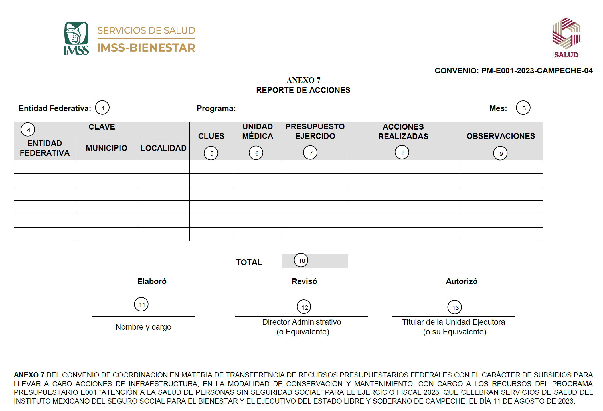 | 1 | CCSSA001705 | CENTRO DE SALUD CARMEN | CALLE CIRICOTE 4 COLONIA MADERAS CALLE C.P.24154 | $ 6,960,925.70 |