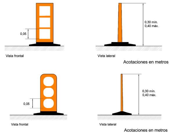 Son elementos que se colocan provisionalmente en las zonas de obra donde se realicen trabajos de construcción, modernización, rehabilitación, conservación o mantenimiento, con el objeto de encauzar el tránsito de peatones, vehículos y equipo de construcción a lo largo de un tramo en obra e indicar cierres, estrechamientos y cambios de dirección en una carretera o vía urbana, ocasionados por dichos trabajos.