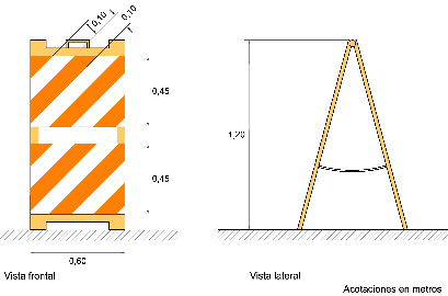 4.3.2.4. Diversas: cuando tienen por objeto encauzar y prevenir a los usuarios de las carreteras o vías urbanas, durante los trabajos de construcción, modernización, rehabilitación, conservación o mantenimiento, pudiendo ser dispositivos diversos para indicar la existencia de obstáculos y bifurcaciones, así como marcar estrechamientos del arroyo vial.