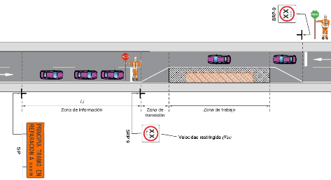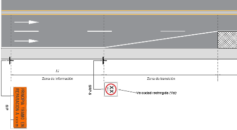 | [1] Se utilizará la velocidad reglamentaria indicada en el señalamiento del tramo de la carretera o vía urbana donde se ubicará la zona de obra. |