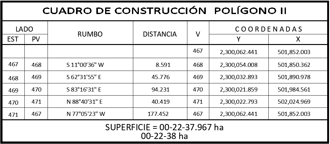 18. Que el comisionado técnico del RAN y el comisionado agrario de la Sedatu rindieron el "informe de comisión de Trabajos Técnicos e Informativos de Expropiación", de 9 de junio de 2023, en el que señalan que la superficie real a expropiar al ejido "Xanabá", municipio de Izamal, estado de Yucatán, es de 39-75-32 hectáreas de terrenos de temporal de uso común, lo cual se describe en el siguiente plano y cuadros de construcción: