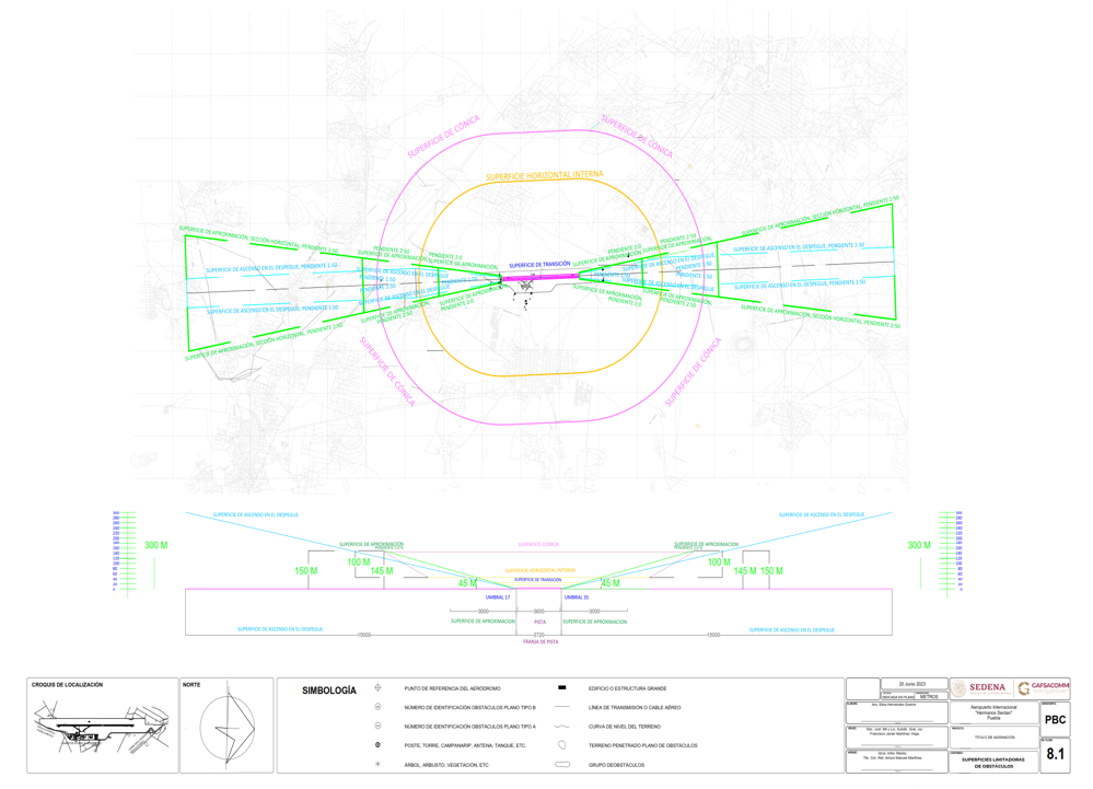 2.2 Clasificación, Clave de referencia y Categoría: Conforme al proyecto presentado y una vez aprobado el Programa Maestro de Desarrollo, el aeródromo civil se clasificará como Aeropuerto Internacional, con clave de referencia de la Organización de Aviación Civil Internacional (OACI) "4D", Clasificación Internacional, Servicio de Salvamento y Extinción de Incendios (SSEI), Categoría "6" en condiciones meteorológicas adecuadas, con operaciones en horarios diurno y nocturno, y aeronave de diseño acorde a la citada clave de referencia, sin perjuicio de lo establecido en el segundo párrafo de la condición 2.4 de este título de asignación.
