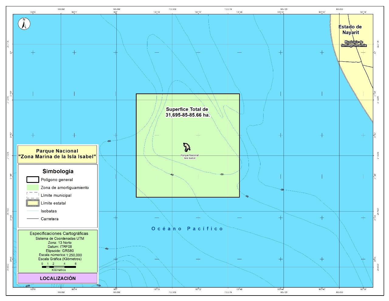 Con Aviso publicado en el Diario Oficial de la Federación, el día 8 de noviembre de 2023, se puso a disposición del público en general el estudio realizado por la Comisión Nacional de Áreas Naturales Protegidas para justificar la expedición del Decreto por el que se pretende declarar como área natural protegida con el carácter de parque nacional Zona Marina de Isla Isabel, ubicado en el Golfo de California, mismo que posee las características que se citan a continuación para su identificación: