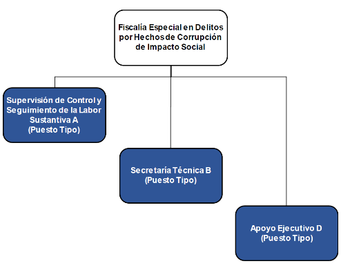a. La oficina de la persona titular de la Fiscalía Especial en Delitos por Hechos de Corrupción de Impacto Social, se integrará conforme a lo siguiente:
