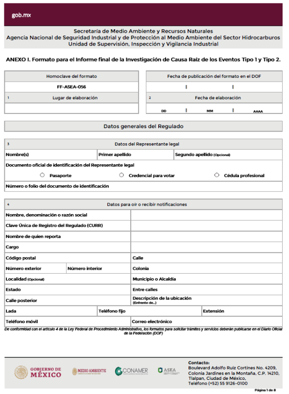Al margen un sello con el Escudo Nacional, que dice: Estados Unidos Mexicanos.- MEDIO AMBIENTE.- Secretaría de Medio Ambiente y Recursos Naturales.- ASEA.- Agencia de Seguridad, Energía y Ambiente.