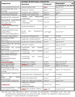 | Tabla 4-Unidades SI derivadas coherentes con nombres y símbolos especiales. resistencia eléctrica O | resistencia eléctrica | El símbolo correcto de resistencia eléctrica es el símbolo . | De conformidad con el artículo 47, fracciones II y III y 64 de la Ley Federal sobre Metrología y Normalización (LFMN), el CCONNSE y su Grupo de Trabajo instalado analizaron el comentario a este capítulo y decidieron aceptarlo, para quedar de la siguiente manera: Tabla 5 - Unidades SI derivadas coherentes con nombres y símbolos especiales |