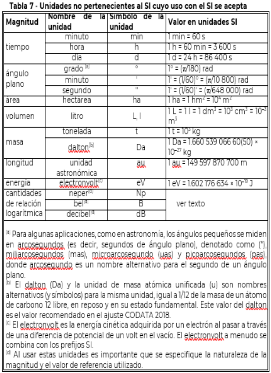 | Tabla 6-Unidades no pertenecientes al SI cuyo uso con el SI se acepta. | Comparar y ajustar la tabla 6 del Proyecto NOM contra la tabla 8 de la versión 2019 del documento Systéme international d'unités" | Al no utilizar la versión 2019 del documento: "Systéme international d'unités" Cambian los contenidos de la Tabla 6, (véase después de la tabla 8 del documento referido) | De conformidad con el artículo 47, fracciones II y III y 64 de la Ley Federal sobre Metrología y Normalización (LFMN), el CCONNSE y su Grupo de Trabajo instalado analizaron el comentario a este capítulo y decidieron aceptarlo en los términos planteados. Tabla 7 - Unidades no pertenecientes al SI cuyo uso con el SI se acepta |