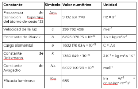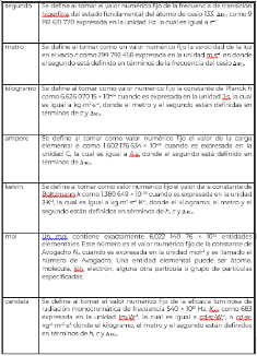 | | Tabla 2. Constantes definitorias Al realizar un cambio en el Sistema Internacional de Unidades siempre ha sido esencial mantener la continuidad tanto como sea posible. Los valores numéricos de las constantes definitorias han sido seleccionados para ser consistentes con los valores anteriores conforme lo permiten el avance de la ciencia y del conocimiento. | | |