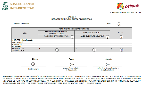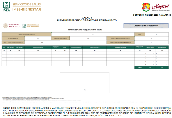 | 1 | HOSPITAL DE LA MUJER | Avenida Aguamilpa 333; esq. Av. Emilio M. González, Colonia. Ciudad Industrial, C.P.63173, Tepic, Nayarit | EQUIPO | $258,000,000.00 |