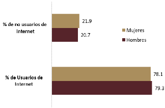 A pesar de que la diferencia en la brecha digital de género(42) es un tanto equitativa, es claro que la brecha digital continúa siendo contundente en las zonas rurales.