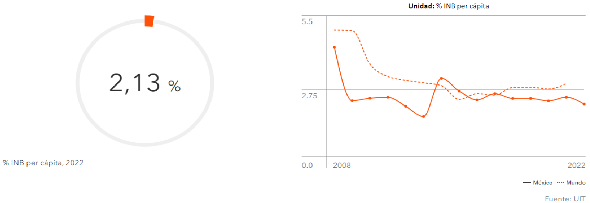 44 Canasta de banda ancha fija de nivel básico. Datos de series temporales combinadas: de 2008 a 2017, la canasta se compone del plan más barato que proporciona al menos 1 GB de datos mensuales de alta velocidad (256 Kbit/s o superior) del operador con mayor cuota de mercado en cada economía. A partir de 2018, la cesta se compone del plan más barato que proporciona al menos 5 GB de datos mensuales de alta velocidad (256 Kbit/s o superior) del operador con mayor cuota de mercado en cada economía. (https://datahub.itu.int/dashboards/umc/indicator/?e=MEX&i=34616), consultado el 05-septiembre-2023.