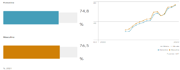 Fuente: Unión Internacional de Telecomunicaciones (Mundo: no tiene datos disponibles)