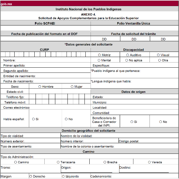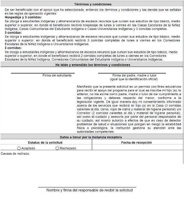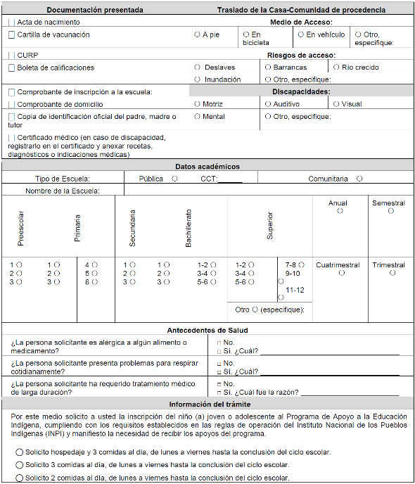 e) Casa Universitaria Indígena: En estos espacios se brinda alimentación, hospedaje, artículos de higiene personal y Actividades Complementarias a estudiantes de Educación Superior (Licenciatura o equivalente y Maestría) y Apoyo a Titulación; atiende, de manera prioritaria, a aquellos que provienen de comunidades o localidades que no cuentan con opciones educativas en estos niveles. Estos espacios son administrados y operados por el INPI;