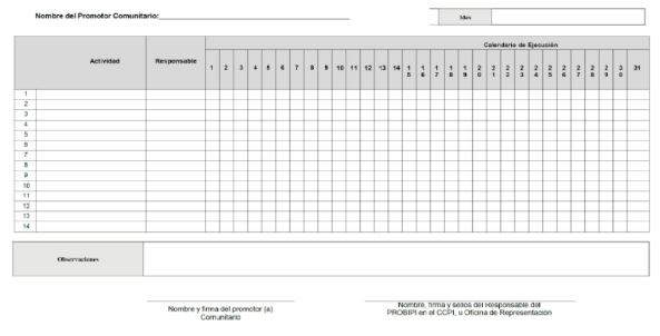 | Nombre y firma de la persona Promotora comunitaria | | Nombre y firma del responsable del Apoyo y sello de la Unidad Operativa |