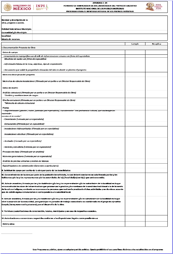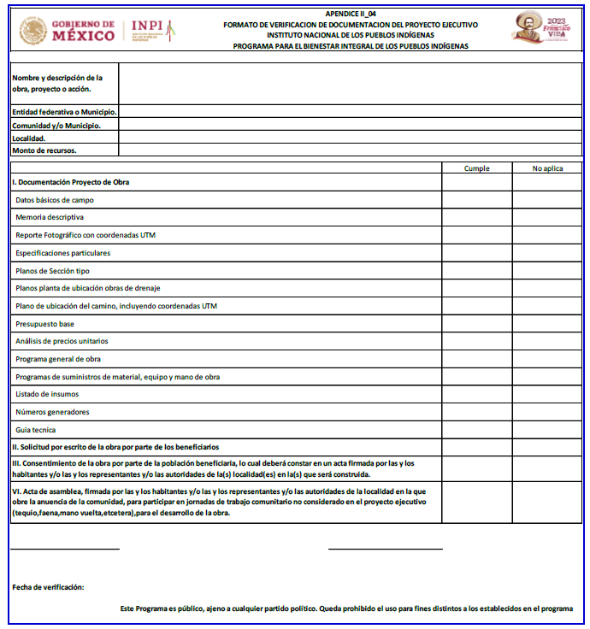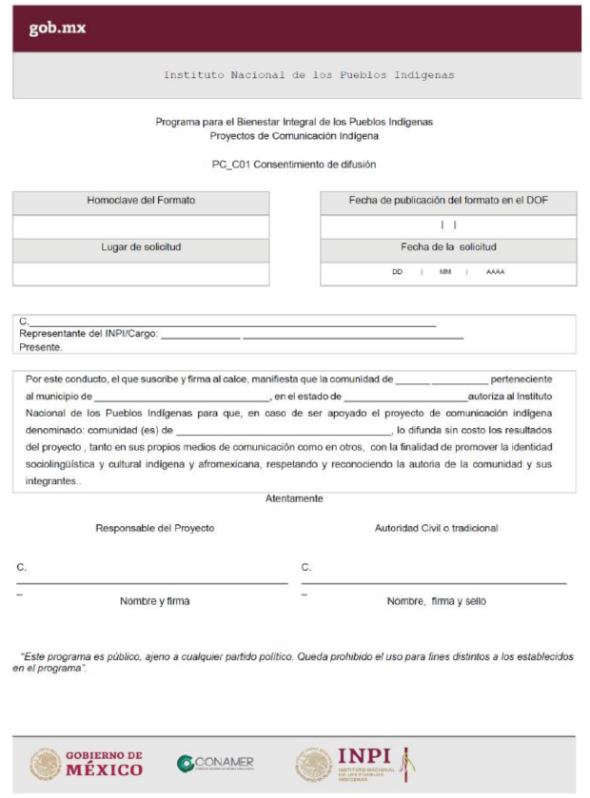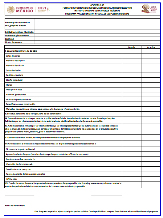 Al margen un sello con el Escudo Nacional, que dice: Estados Unidos Mexicanos.- GOBIERNO DE MÉXICO.- Instituto Nacional de los Pueblos Indígenas.