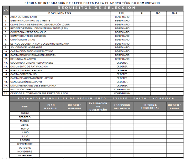 | Los expedientes de los pueblos y comunidades, asignados están debidamente integrados conforme a la normatividad vigente. | | | | | |