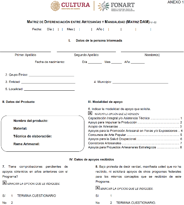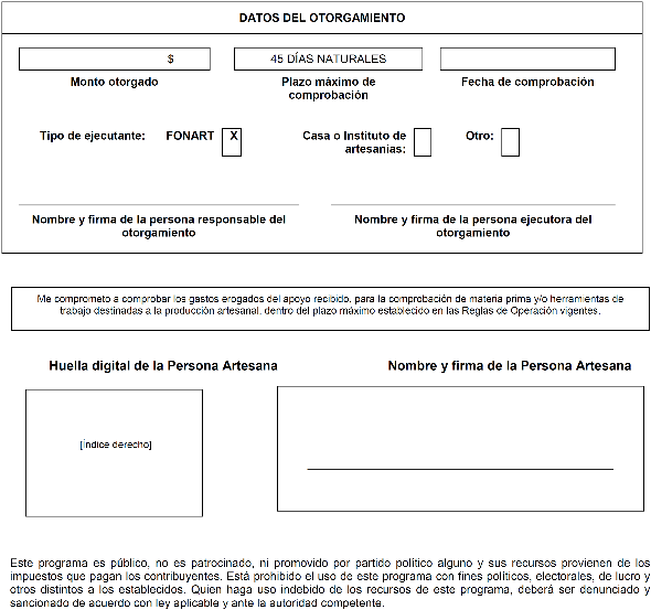 | | Tipo de ejecutante: | FONART | X | Casa o Instituto de artesanías | | Otro: | | | |