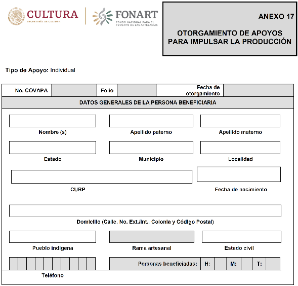 Anexo 17 Formato de Otorgamiento de Apoyos para Impulsar la Producción.