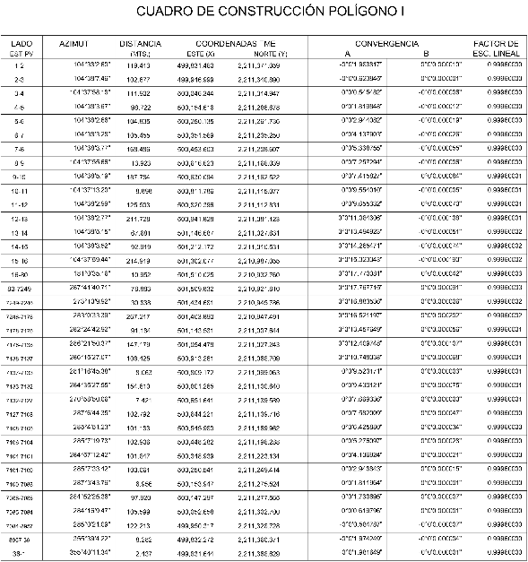 *Meridiano central de referencia para el polígono I de 99° 28', y para el polígono II de 99° 30'.