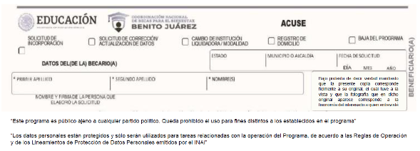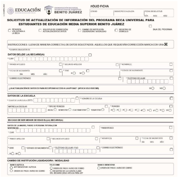 Anexo 3.- Solicitud de Actualización de Información del Programa Beca Universal para Estudiantes de Educación Media Superior Benito Juárez.