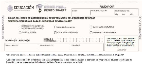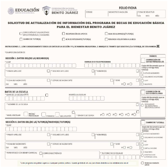 Anexo 3.- Solicitud de Actualización de Información del Programa de Becas de Educación Básica para el Bienestar Benito Juárez.